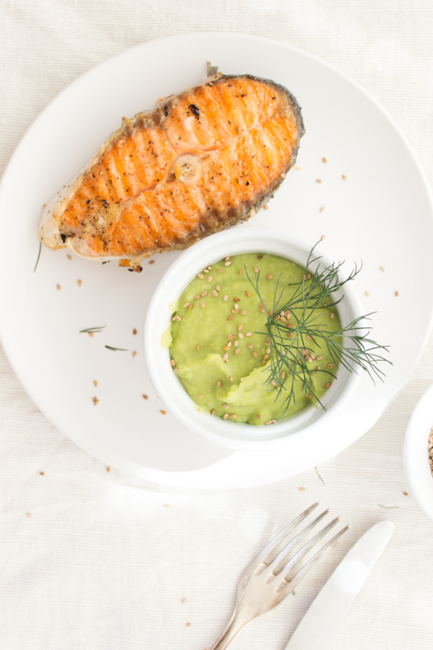 Gegrillter Lachs mit Erbsenpüree